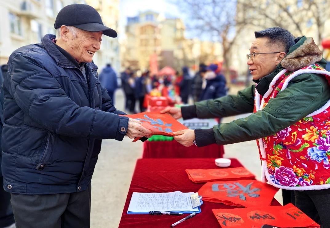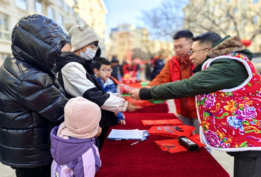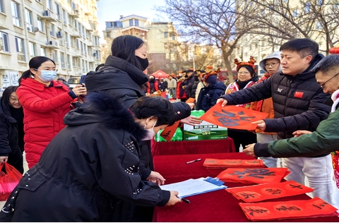 岁末腊浓,春韵渐启。为弘扬中华优秀传统文化,让社区居民在笔墨书香中感受新春气息、体悟文化温情,2月8日上午,秦皇岛图书馆联合开发区社发局、青馨家园社区,在青馨家园二区开展“书春日·送春联”文化惠民活动,以笔为媒、以墨传情,为社区居民送上一份新春的文化厚礼,让居民在社区度过一个书香满溢的文化年、幸福年。