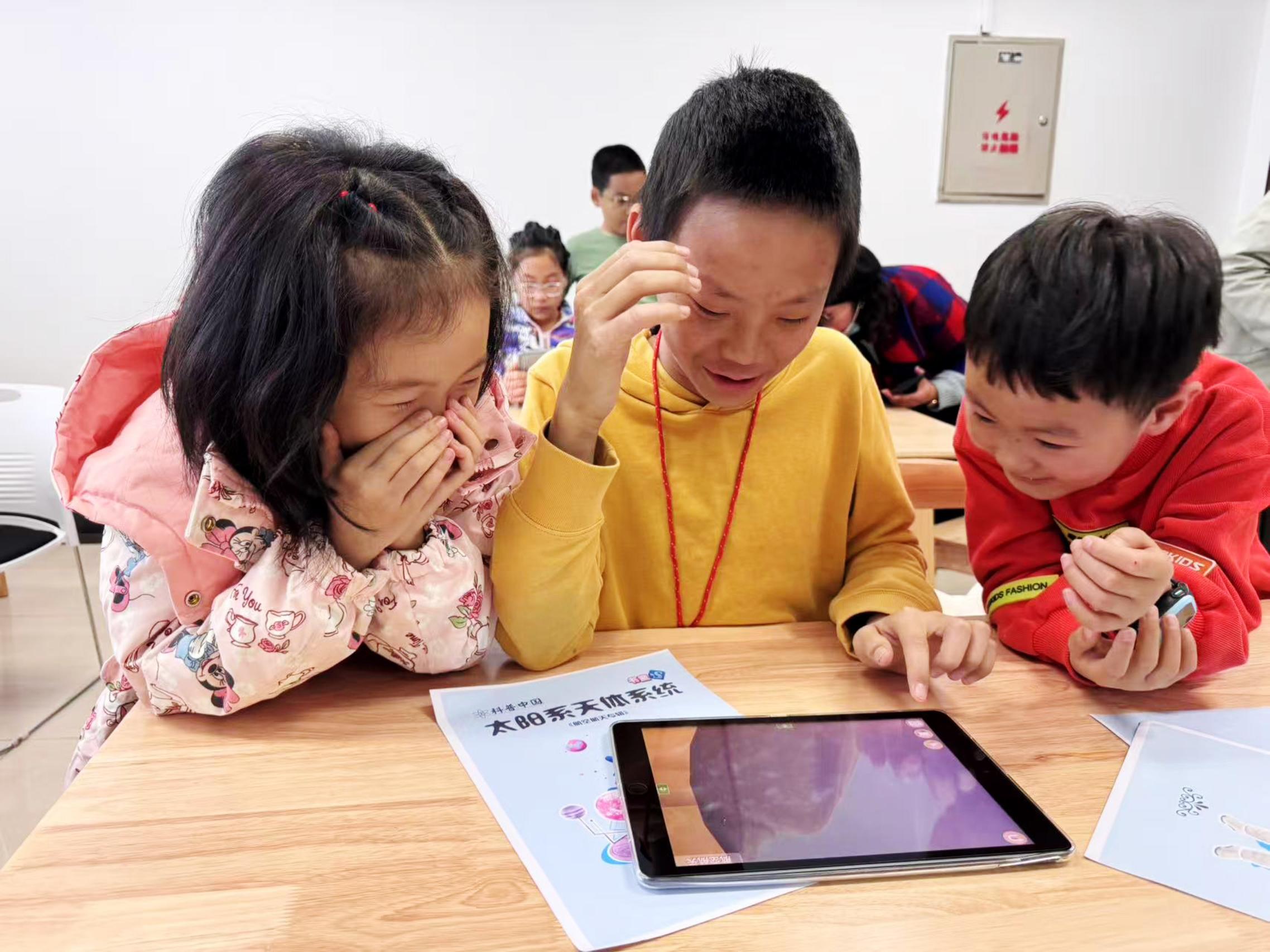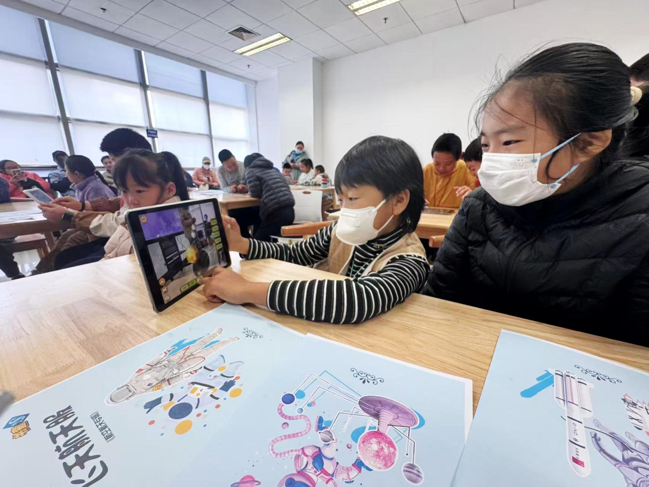 工作人员先为孩子们讲解理论知识,激发宇宙探秘兴趣。孩子们在老师的引导下,通过VR设备和AR交互环节“漫游”星际和海底,在虚拟现实中直观感受宇宙的浩瀚,激发对天文知识的浓厚兴趣。现场VR/AR的交互环节让孩子们在动手操作中学习科学原理,增强科普教育的趣味性和互动性。