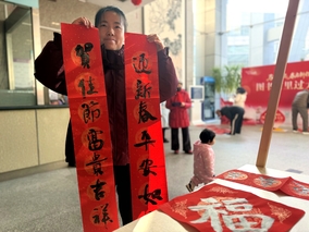 闻讯而来的市民络绎不绝,大家有序排队、驻足观赏,精心挑选心仪的春联内容,主动请书法家书写专属祝福,现场欢声笑语不断,暖意与墨香交织成最动人的新春图景。“手写的春联带着墨香和温度,比印刷品更有年味,贴在家里既喜庆又有文化气息!”刚领到春联的市民脸上洋溢着幸福的笑容,言语间满是对活动的赞许。还有市民表示,每年都期盼图书馆的送春联活动,既能领到专属的新春祝福,又能近距离感受书法艺术的魅力,让春节过得更有格调、更有意义。